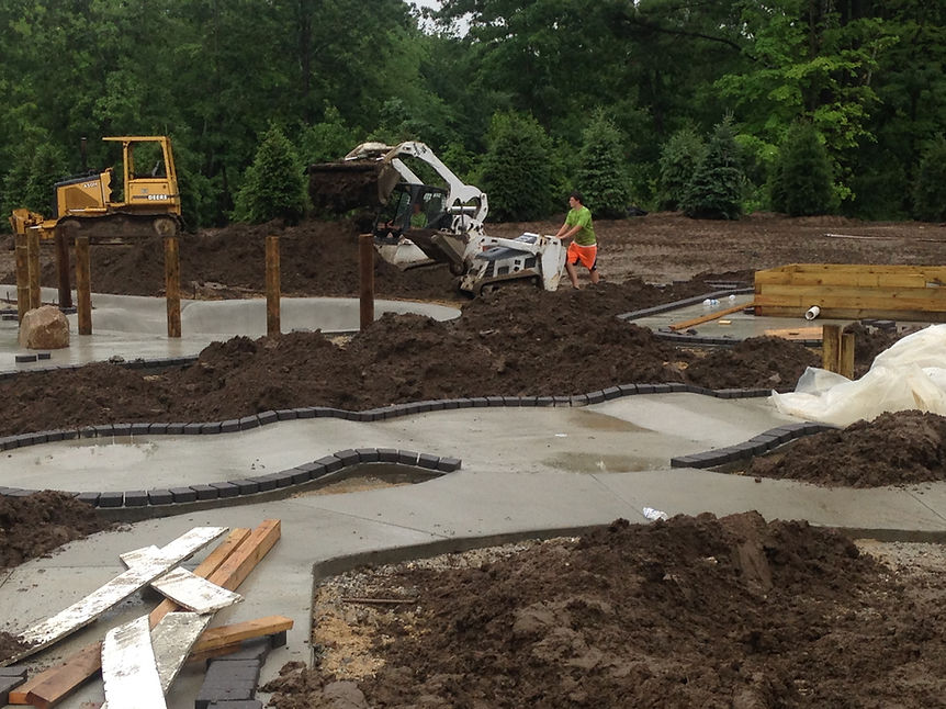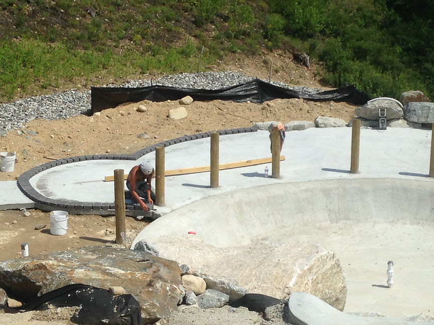 May 13 Twin ponds that you will soon putt between; one is poured, one is ready to be poured. In background is the play-through cave almost ready for Gunite.