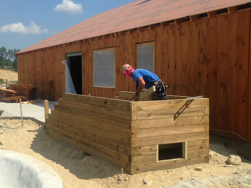 May 24 Last layer of Gunite spraying onto cave; you will be able to play through the cave, behind a waterfall
